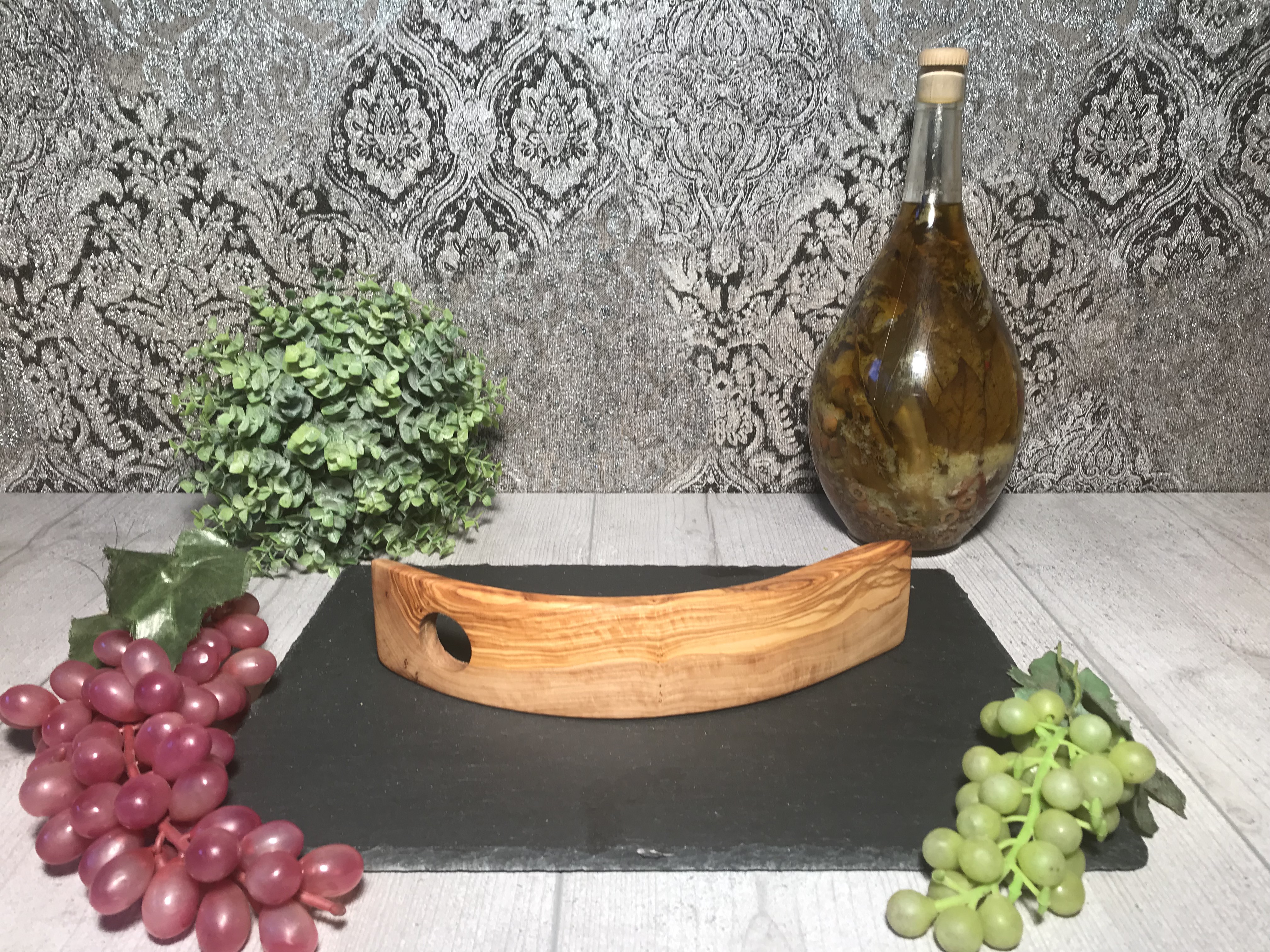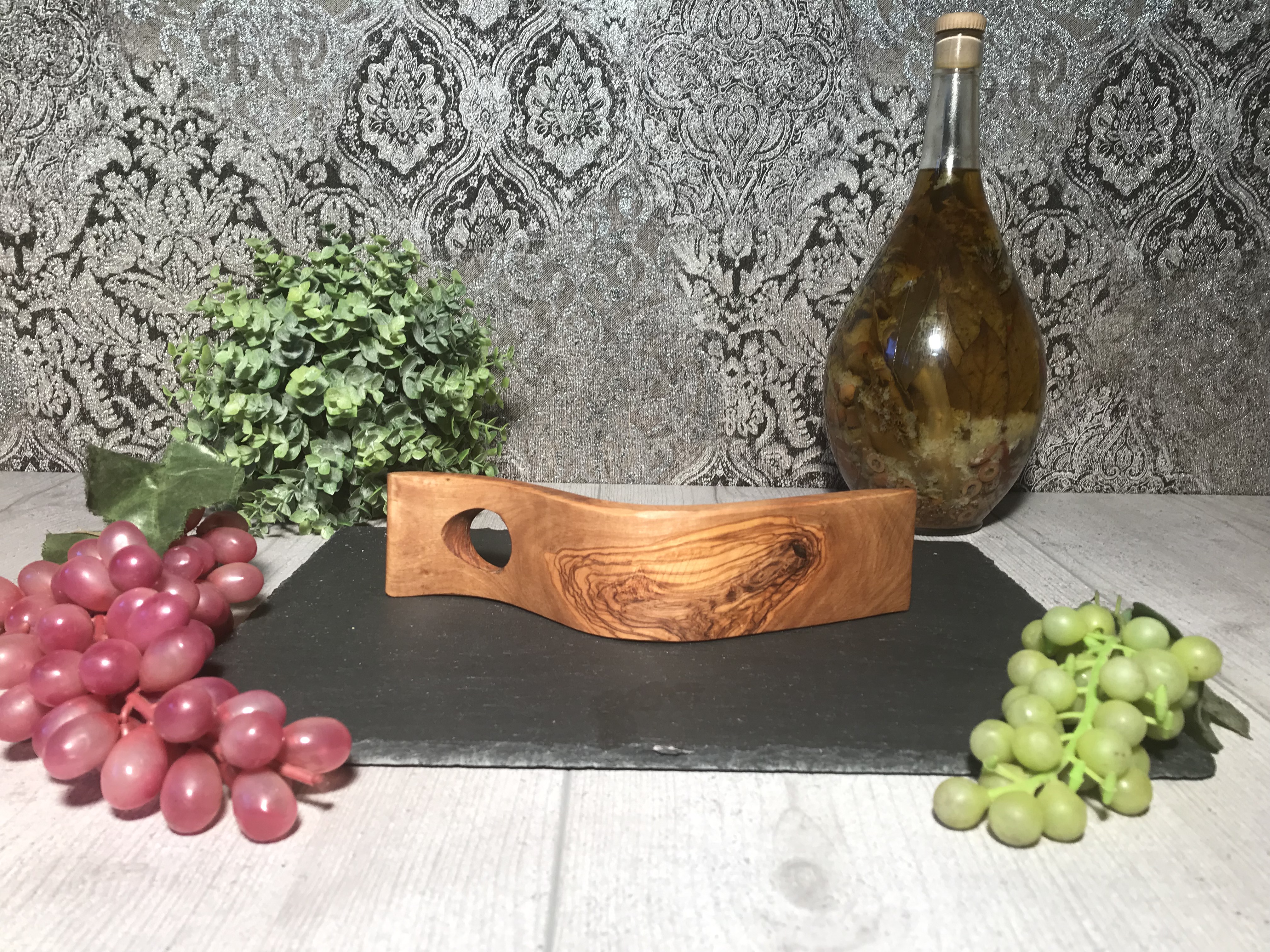 Mit unseren handgearbeiteten Weinflaschenhaltern aus Olivenholz, mit wunderschöner Maserung,
